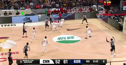 第三节,第三节结束中国男篮52-61落后韩国男篮